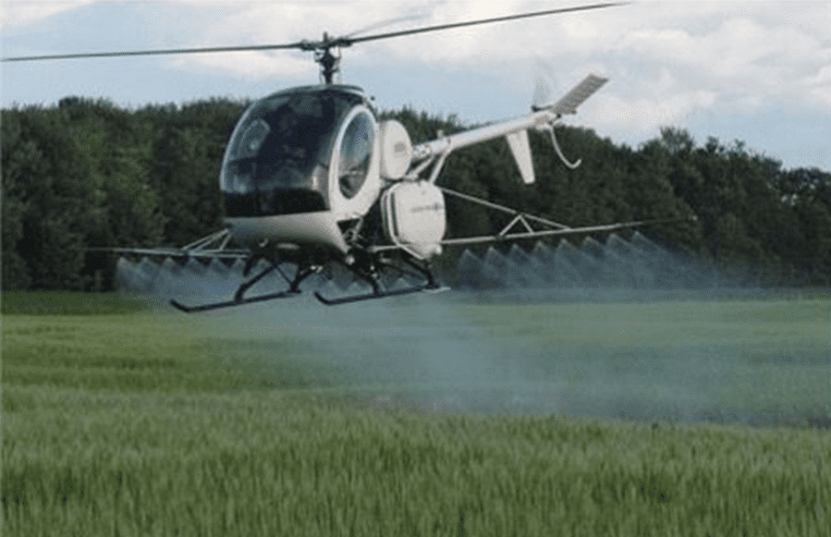 Today, crop farmers use sprayers with large horizontal booms, crop dusters, helicopters, or drones to apply pesticides.