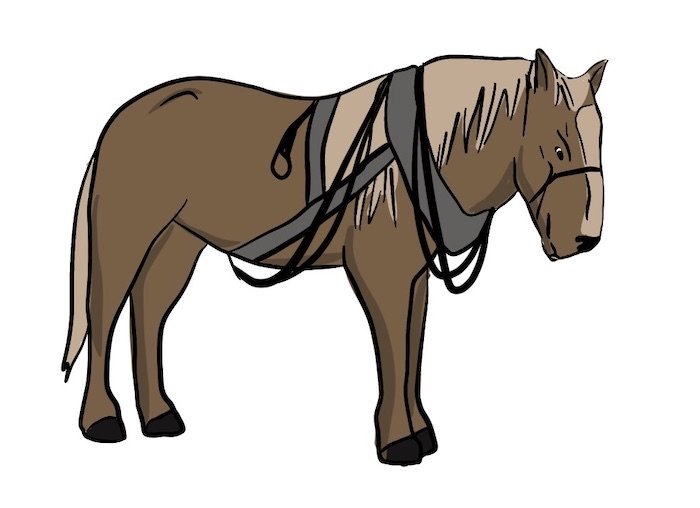 Horses cost more than oxen, but were faster and could get more work done. Horses ate grass and hay, but also needed grain feed to stay healthy. Horses also required a lot of water to drink.