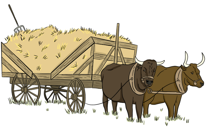 Oxen were used for lessening the workload for the farmer. Oxen could haul logs and pull plows and heavy wagons. A yoke made of wood was used to harness the oxen to the plows or wagons.