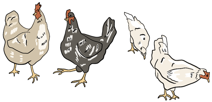 Chickens were used to supply food and comfort to the farmers and their families. Chickens provided eggs, meat, and feathers. The feathers were used to stuff pillows and quilts. Chickens ate the grain the farmers produced. During the summer they were usually free to roam around the yard, but in winter, they needed shelter to survive.