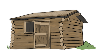 Logs or lumber were used for the door, door frame, and window frames. When glass was not available, greased paper or canvas covered the windows.