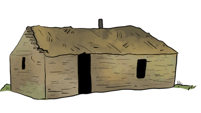 For the roof, logs were placed across the top and covered with sod and hay. Sometimes the floor was made of boards, but often it was just packed earth. When it rained a lot, the house leaked, but these houses were cool in summer, and warm in the winter.