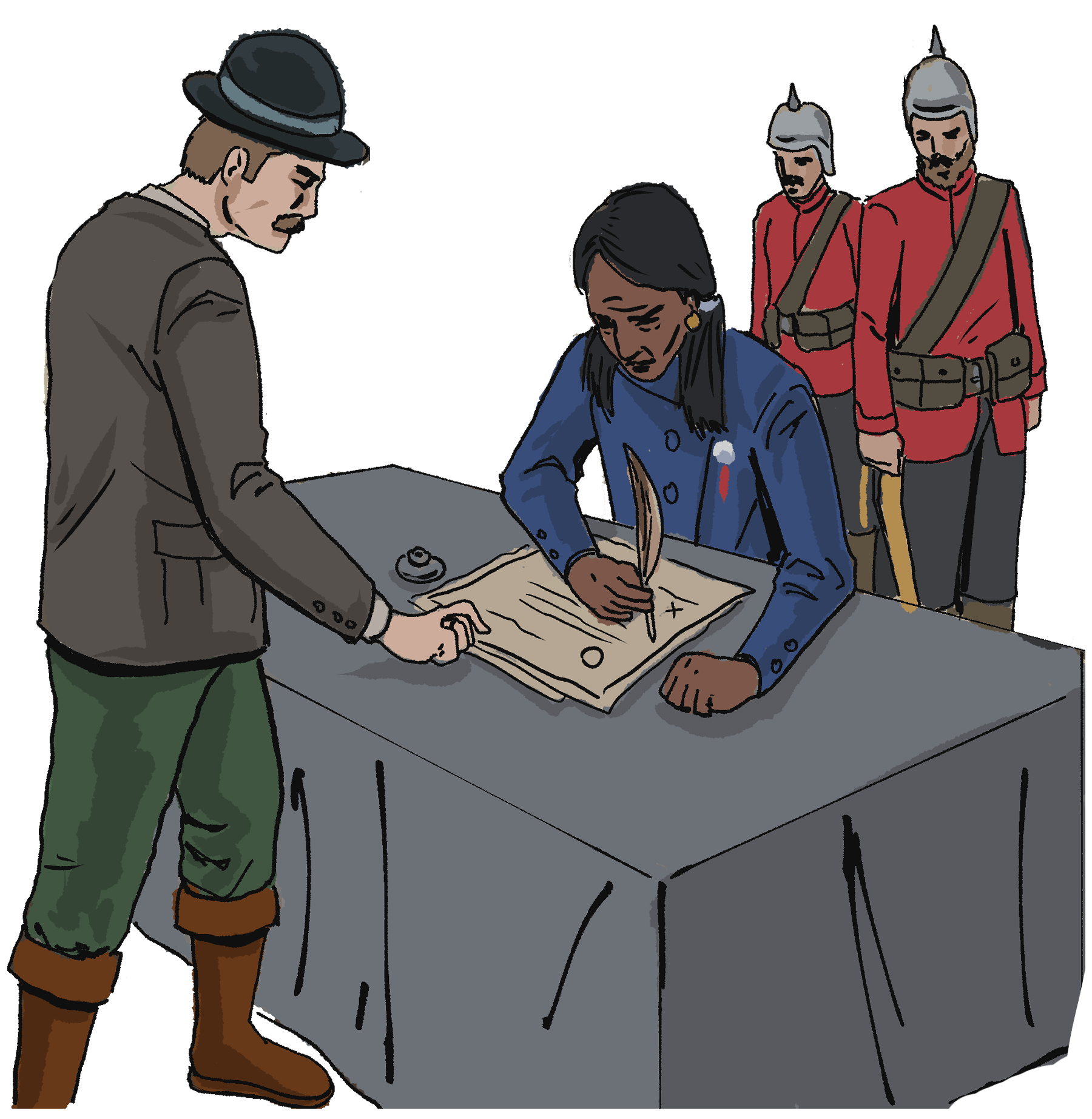 During the time of treaty-making, Queen Victoria was Queen of England and the European negotiators called her the ‘Great White Mother’ and the First Nations were called ‘her children.’