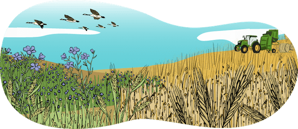 Strip farming is where the land is farmed in strips. Farmers will plant a crop in one strip and either native plants or another type of cover crop will be grown in the next strip.