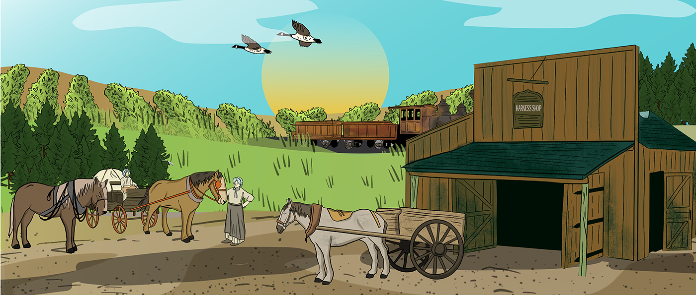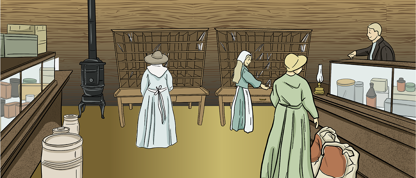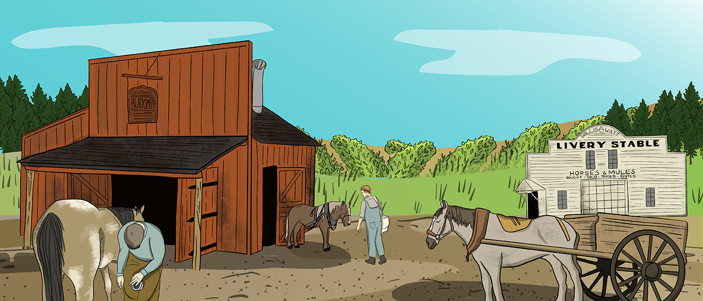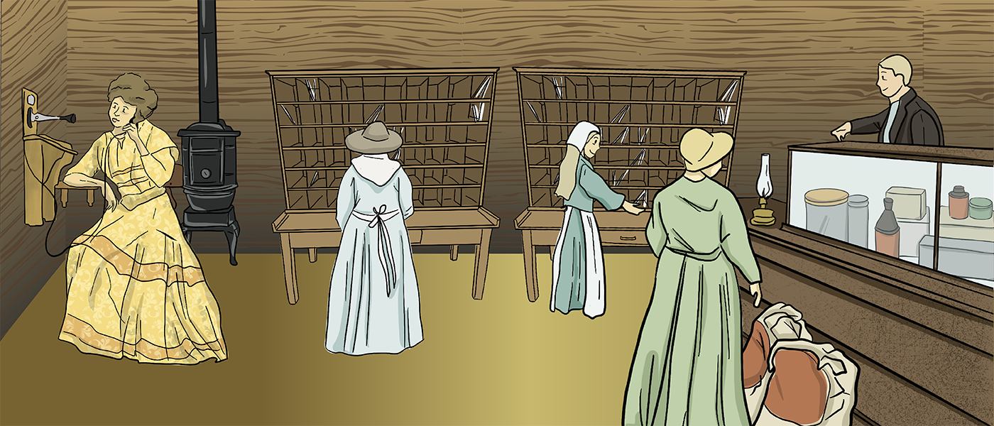 Towns Back to Past Overview Barbershop Blacksmith Shop Carpentry Shop Churches Dress Shop Doctors & Pharmacy General Store Harness Shop Inn & Livery Stable Land Titles & Banks Post Office Printing Shop Telephones Train Stations & Grain Elevators